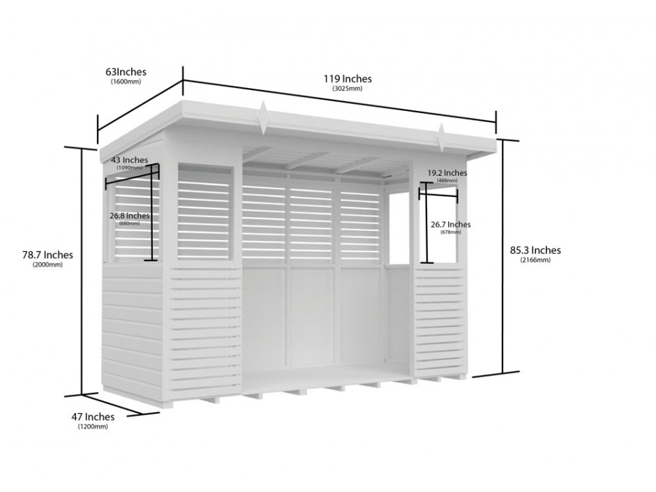 • Roof: 12mm Tongue and Groove Pressure Treated Shiplap with High-Quality Felt