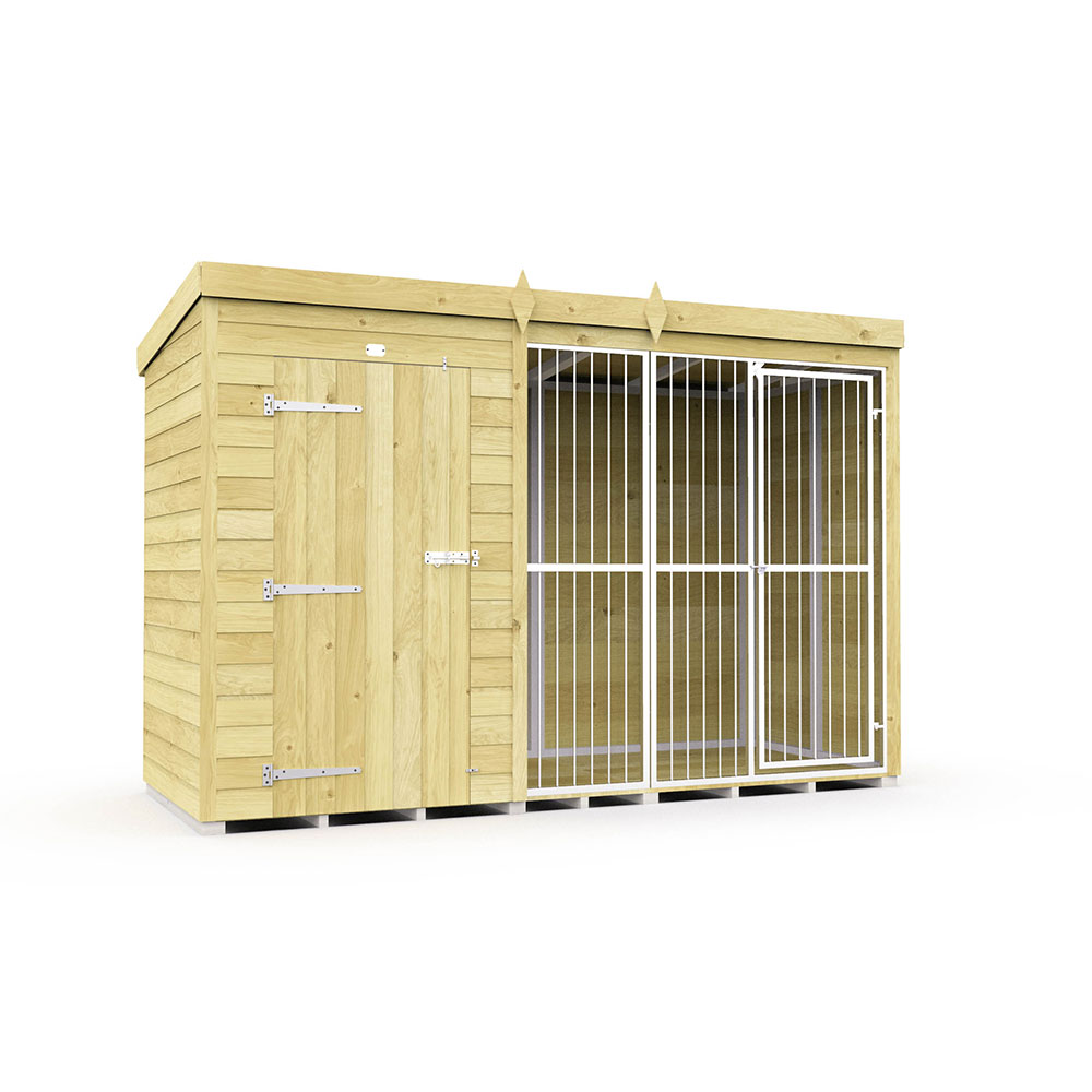 This 10ft X 4ft Dog Kennel and Run (Full Height with Bars) is the ideal outside shelter for your dog to allow the perfect space that they need while staying in comfort. This 10ft X 4ft Dog Kennel and Run (Full Height with Bars) comes water based treated inside and out to aid against rot so it will last for years.