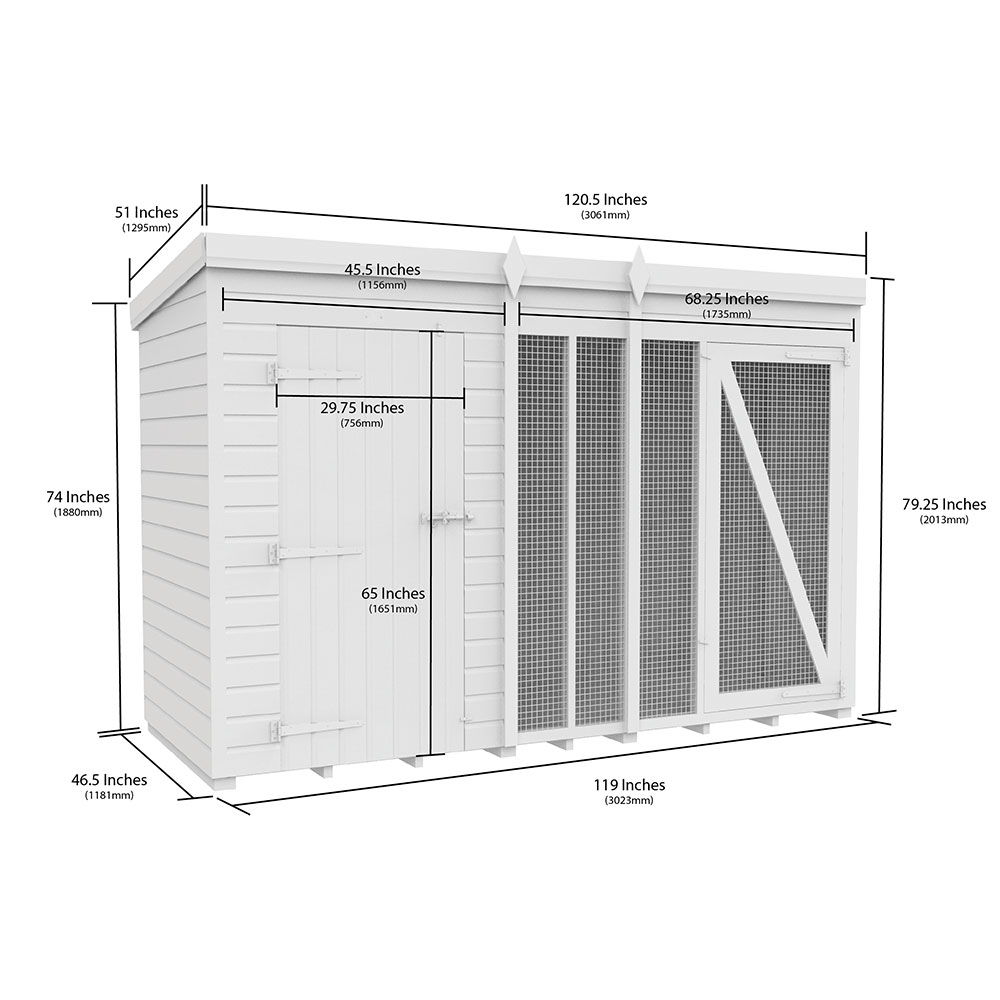 Our 10ft X 4ft Dog Kennel and Run (Full Height) comes with 2x galvanised hinges per door and 2x turn buttons per door as standard. Even with the delivery only option, we supply all the fixtures and fittings.