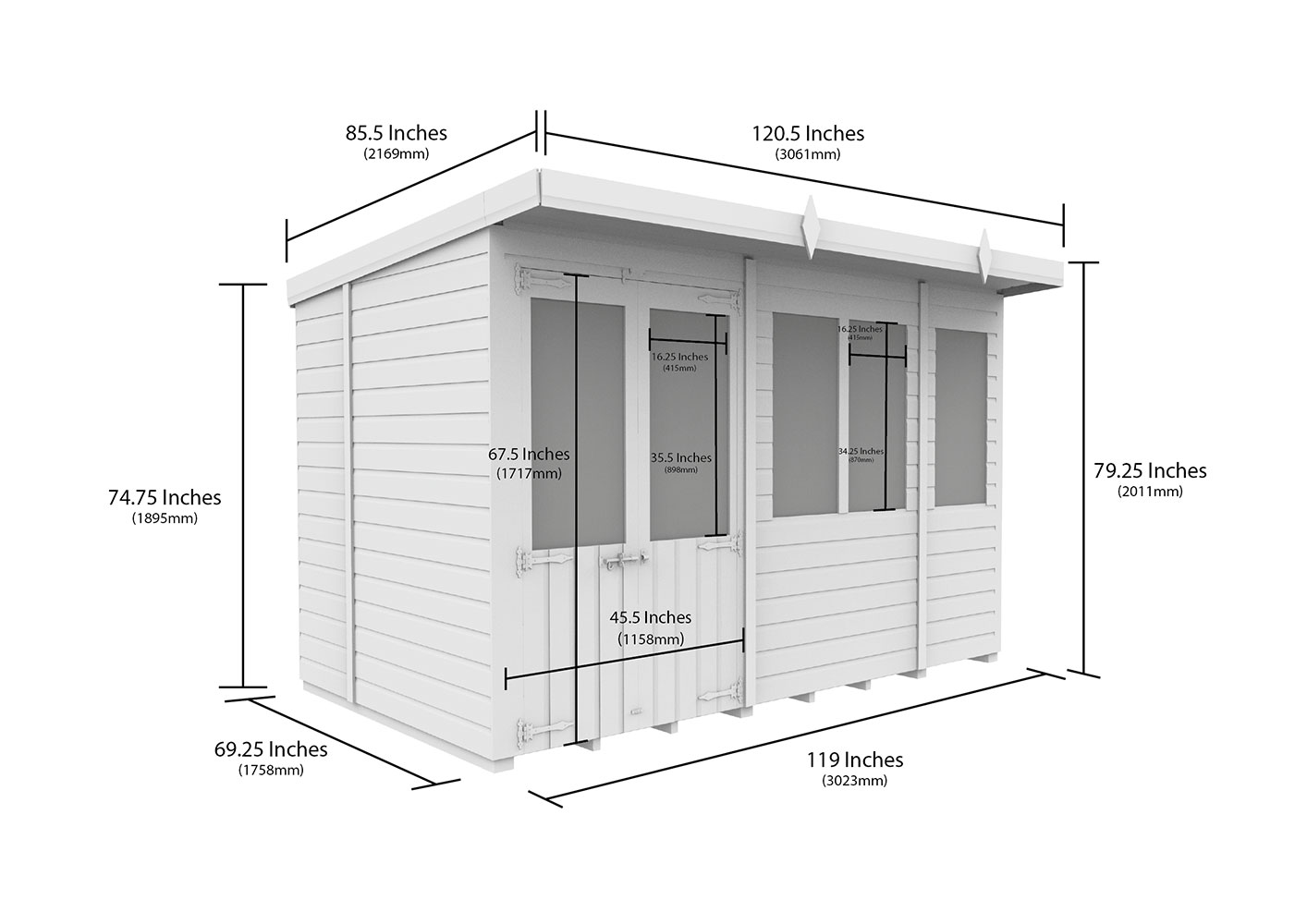 The Flat Pack Sheds 10ft x 6ft Pent Summer House10ft x 6ft Pent Summer House comes flat packed and includes express FREE delivery.