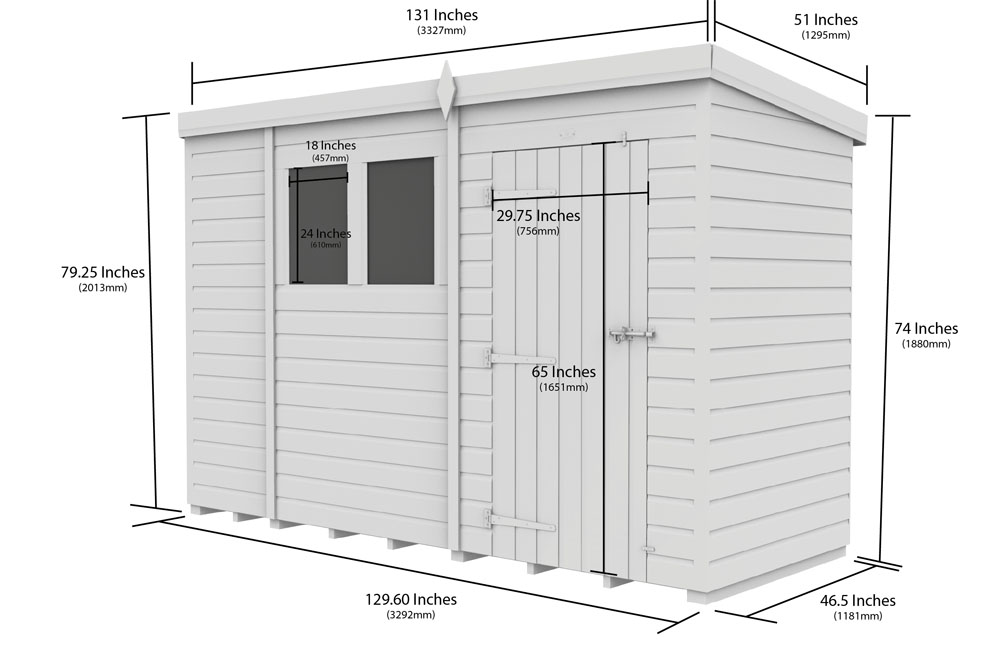 The Flat Pack Sheds 11ft x 4ft Pent Shed comes flat packed and includes express FREE delivery.