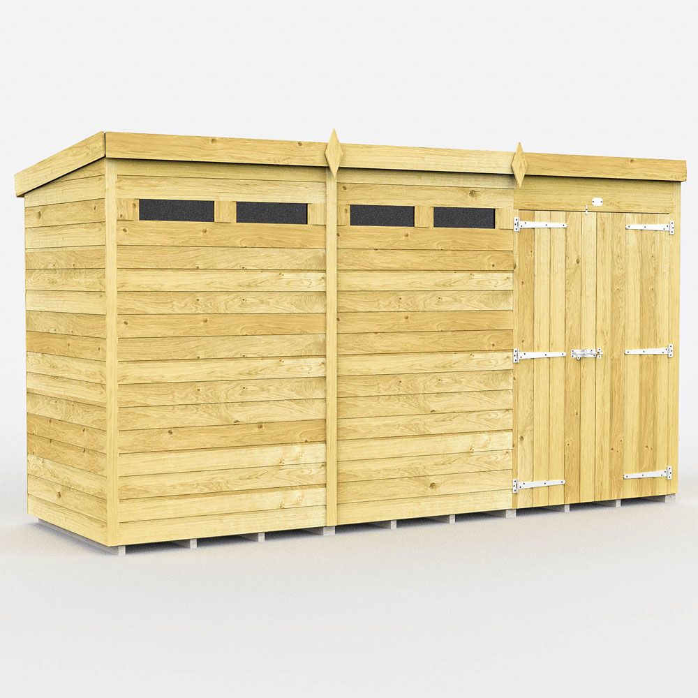 The Flat Pack Sheds 12ft x 4ft Pent Security Shed comes flat packed and includes express FREE delivery.