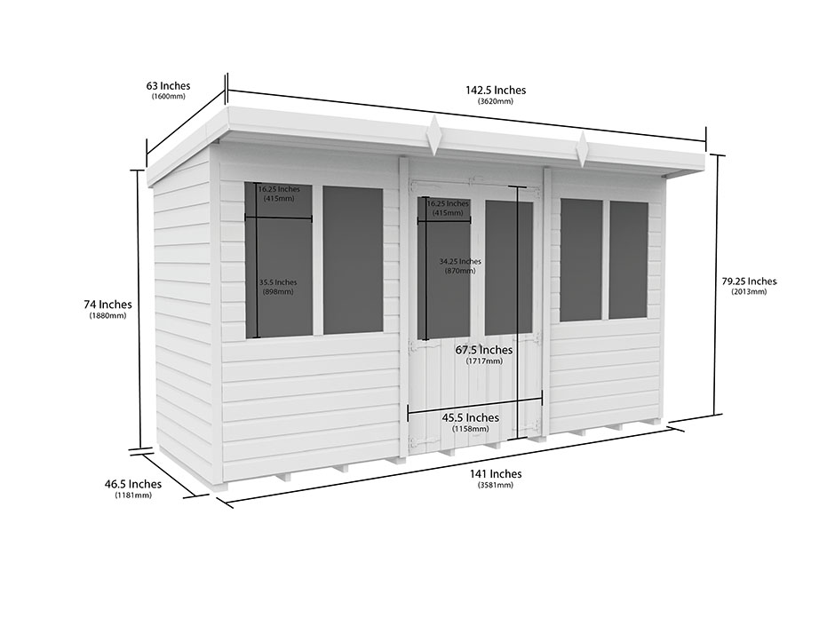 All our summer houses come in metric sizes, please see the dimensions diagram for further details.