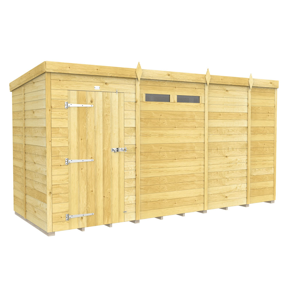 The Flat Pack Sheds 13ft x 5ft Pent Security Shed comes flat packed and includes express FREE delivery.