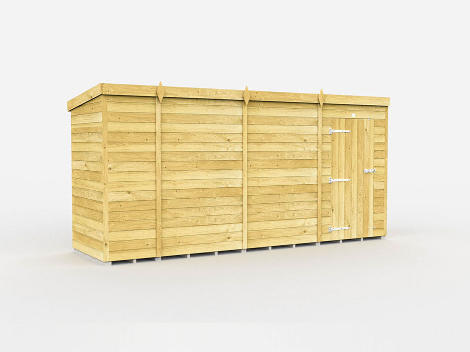 The Flat Pack Sheds 4ft x 14ft Pent Shed comes flat packed and includes express FREE delivery.