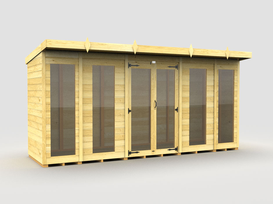 We have now designed, manufactured, delivered and fitted many of these 14ft x 4ft Pent Summer House (Full Height Window) for our wide customer base.