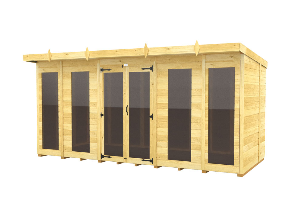 We have now designed, manufactured, delivered and fitted many of these 14ft x 5ft Pent Summer House (Full Height Window) for our wide customer base.
