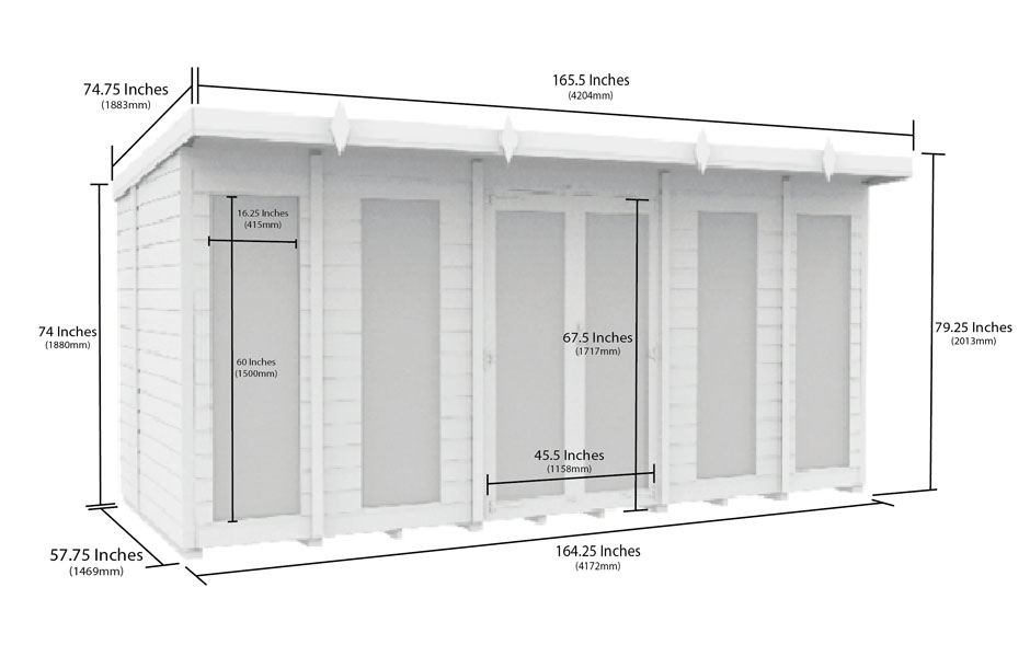 All our summer houses come in metric sizes, please see the dimensions diagram for further details.