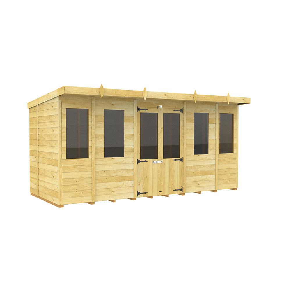 Our 14ft x 5ft Pent Summer Houses are built to withstand the heavier elements of British weather, tongue and groove cladded panels which are pre-engineered to be as weather resistant as possible. No matter whatever you store inside of the wooden garden sheds, you can be sure it will be protected. With a variety of window placement options, you are able to make maximum use of the natural source of light.