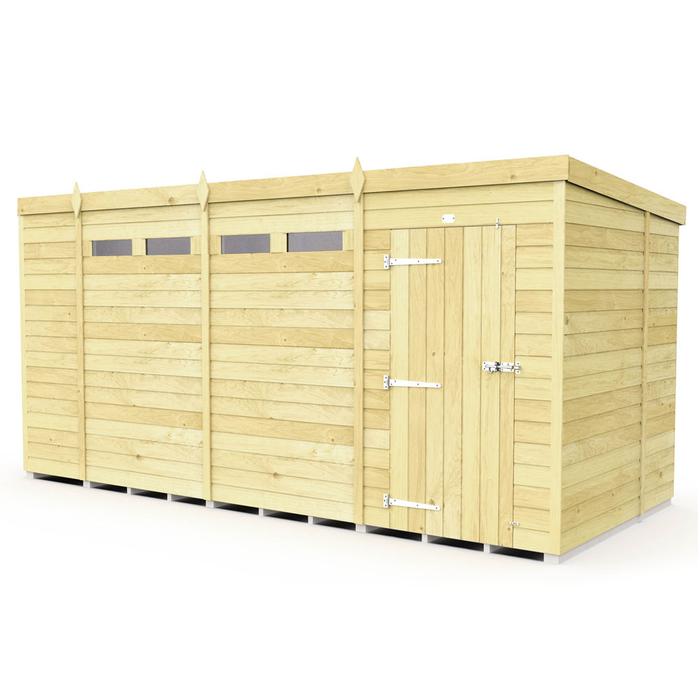 The Flat Pack Sheds 14ft x 7ft Pent Security Shed comes flat packed and includes express FREE delivery.