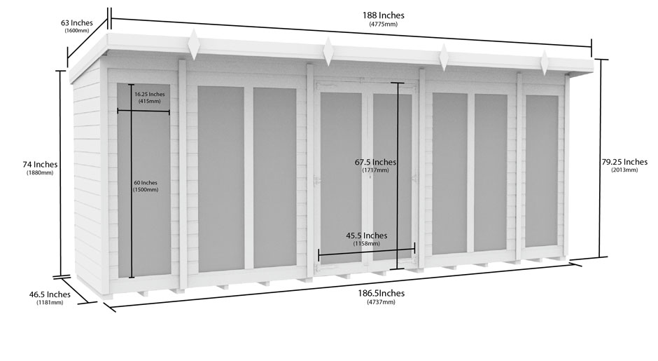 16ft x 4ft Pent Summer House (Full Height Window)