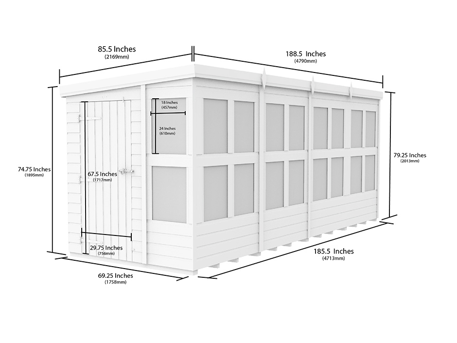 All our sheds come in metric sizes, please see the dimensions diagram for further details.