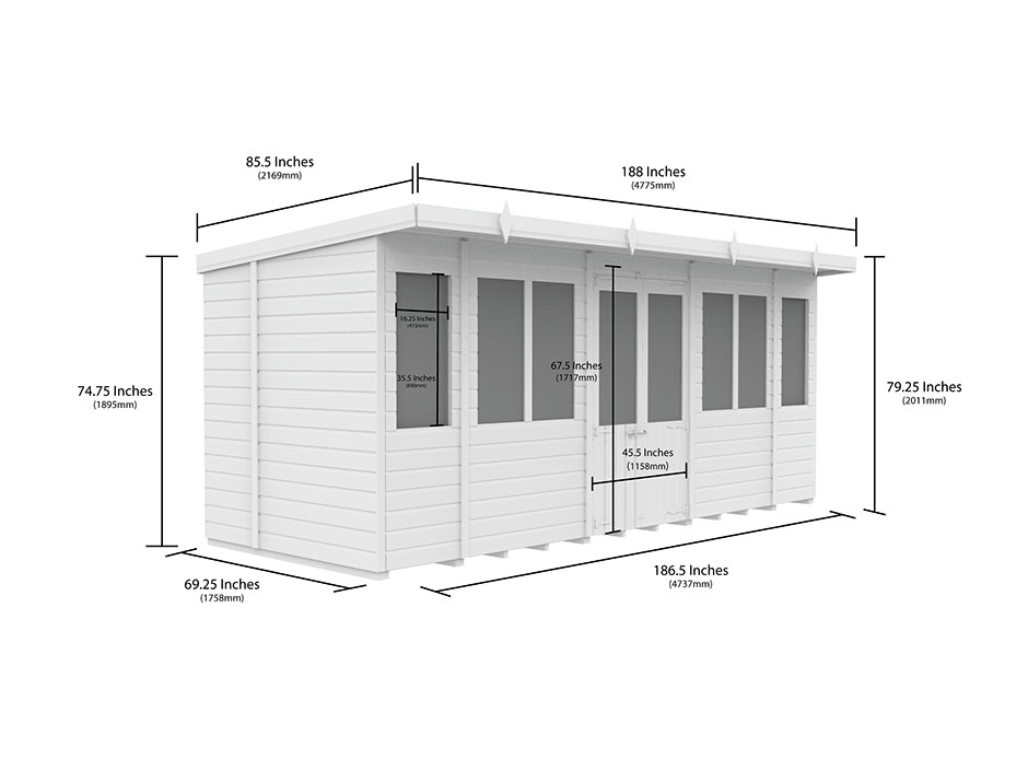 All our summer houses come in metric sizes, please see the dimensions diagram for further details.