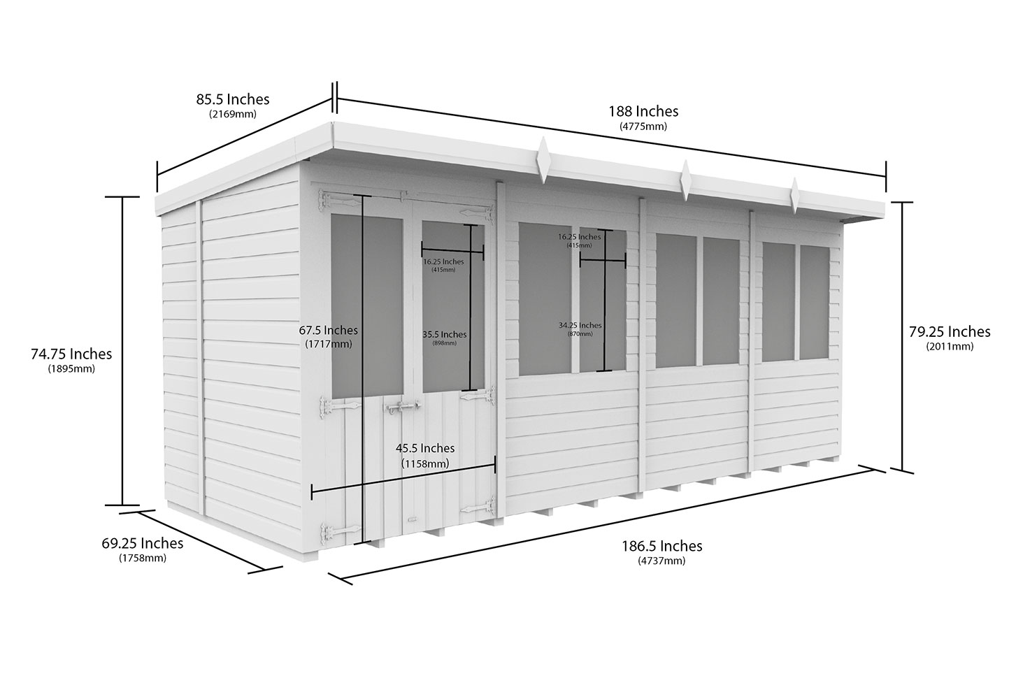 • This building arrives with fleur de lyes hinges, galvanised Brenton padbolts as standard.
