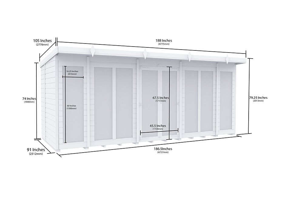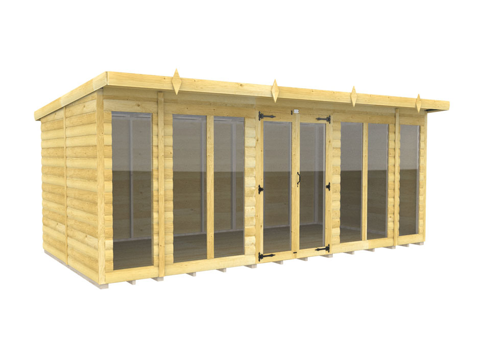 16ft x 8ft Pent Summer House Loglap (Full Height Window)