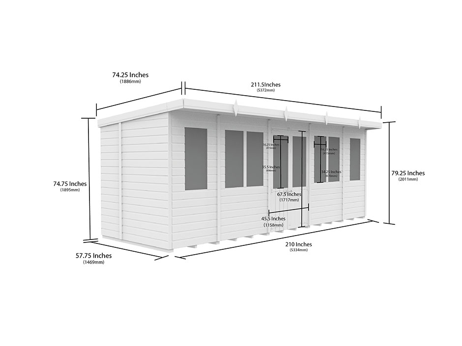 All our summer houses come in metric sizes, please see the dimensions diagram for further details.