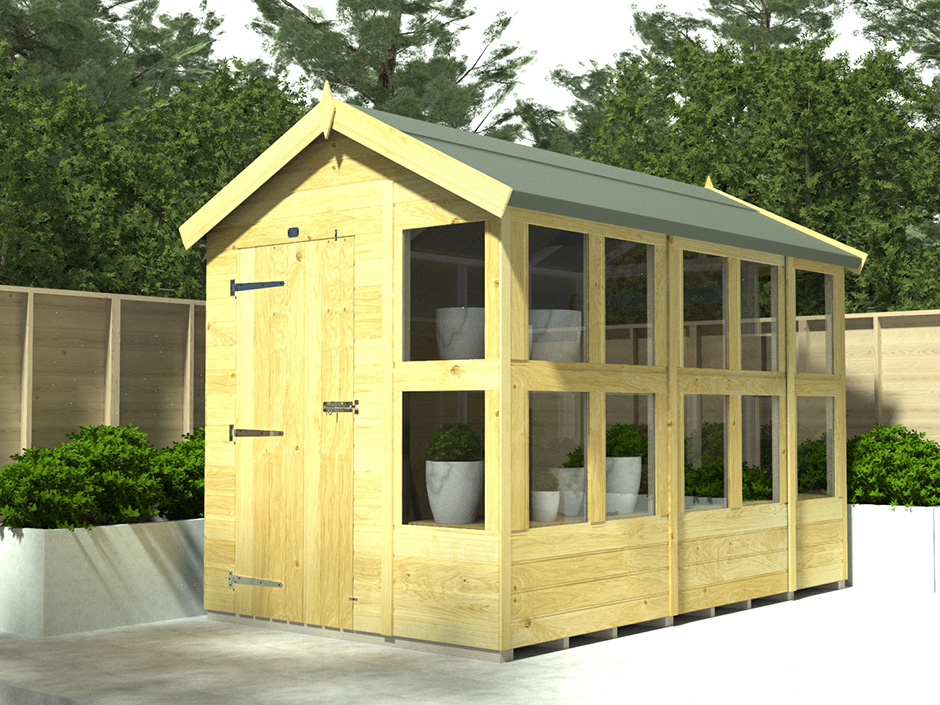 Our potting sheds are built to withstand the heavier elements of British weather, with tongue and groove cladded panels, which are pre-engineered to be as weather resistant as possible. No matter plants and prized possessions you store in our potting sheds, you can be sure it will be protected. With a variety of window placement options, you can make maximum use of the natural source of light. With a FREE internal shelf this will allow you to position your plants in the prime location to help them grow. The pressure treated tongue and groove construction is a much more substantial design than your normal overlap cladding, utilising thicker material for an overall stronger structure. With its heavy-duty floor, you have also the peace of mind that you won’t be restricted to storing the heavier of goods within. These potting sheds are the ultimate plant storage building which will suit all your needs.