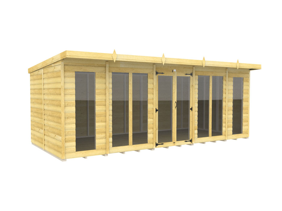 18ft x 8ft Pent Summer House Loglap (Full Height Window)