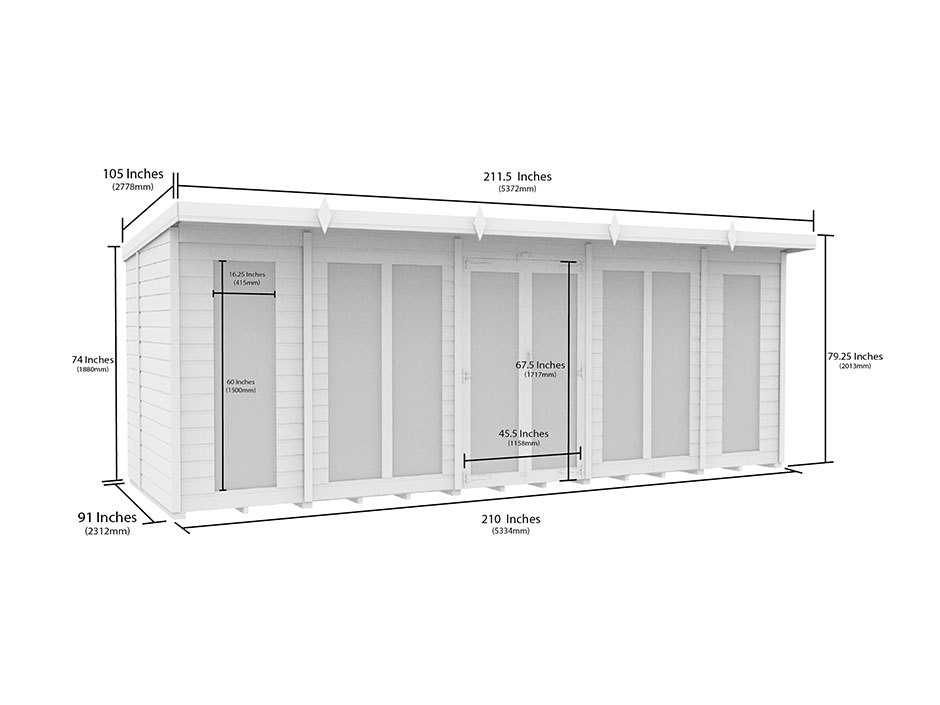 All our summer houses come in metric sizes, please see the dimensions diagram for further details.