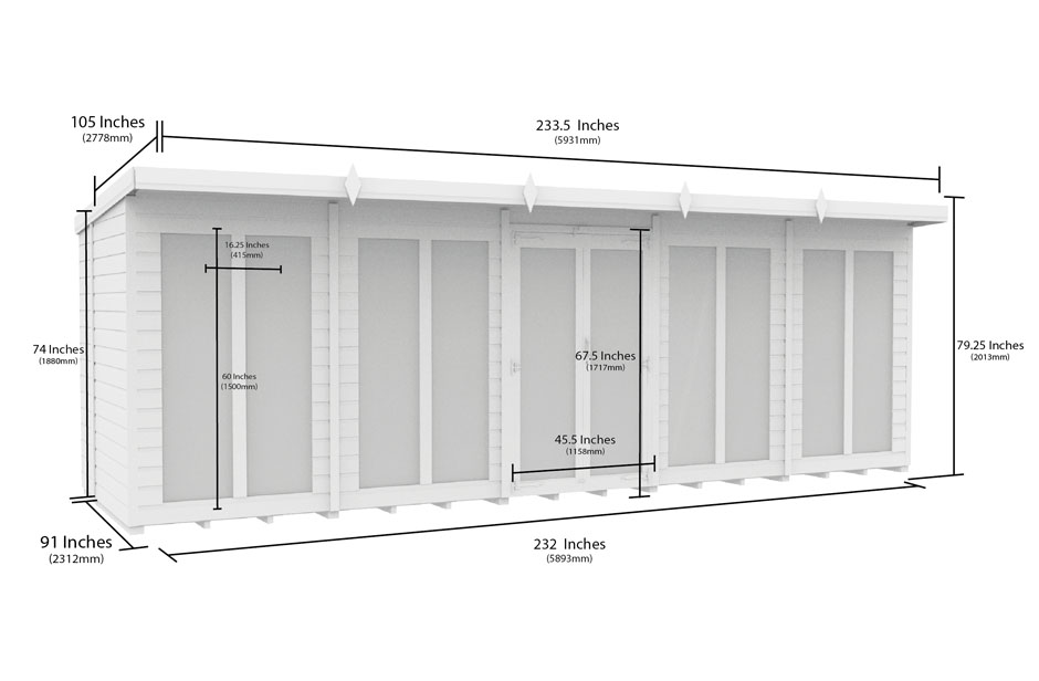 All our summer houses come in metric sizes, please see the dimensions diagram for further details.