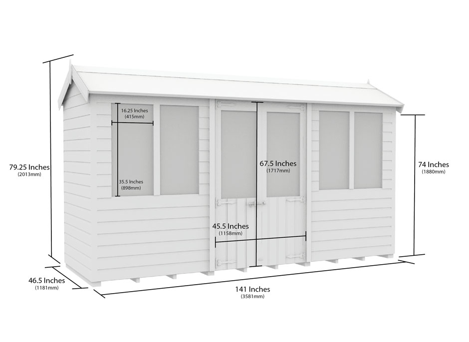 All our summer houses come in metric sizes, please see the dimensions diagram for further details.