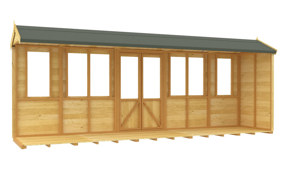 We have now designed, manufactured, delivered and fitted many of these 4ft x 18ft Apex Summer Houses for our wide customer base.