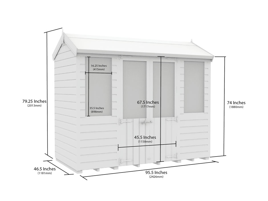All our summer houses come in metric sizes, please see the dimensions diagram for further details.