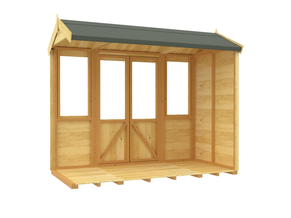 • All our summer houses are manufactured with pressure treated tanalised timber on the outside of the building to help against rotting, fungal and insect attack
