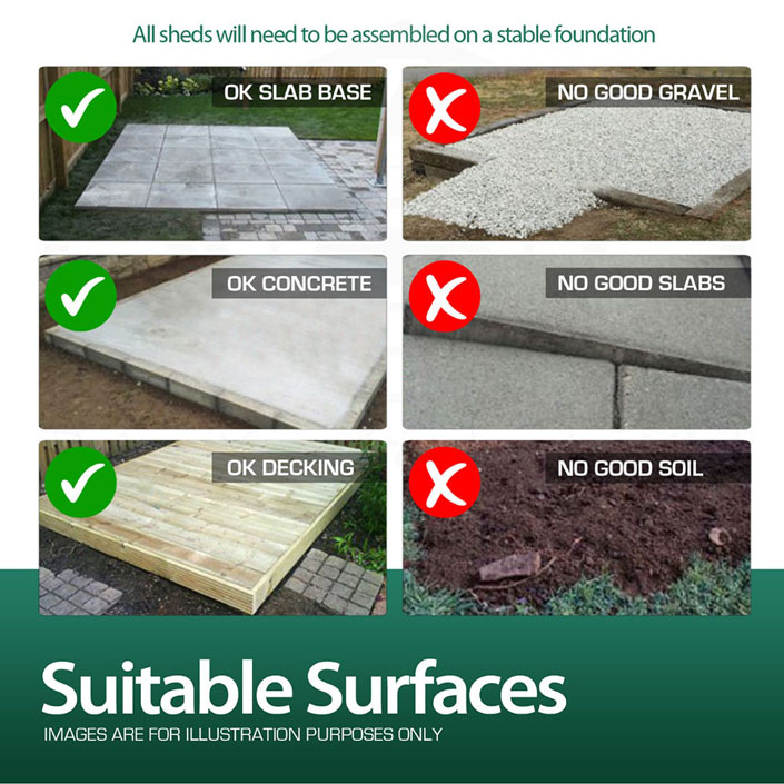 • 18mm pressure treated floorboard planks consisting of floor bearers attached underneath to elevate off the ground