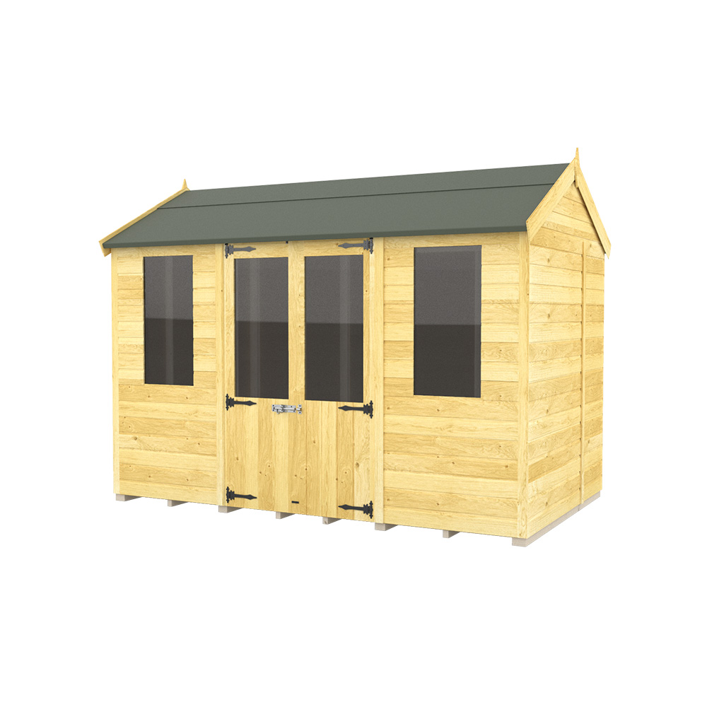 • All our summer houses are manufactured with pressure treated tanalised timber on the outside of the building to help against rotting, fungal and insect attack