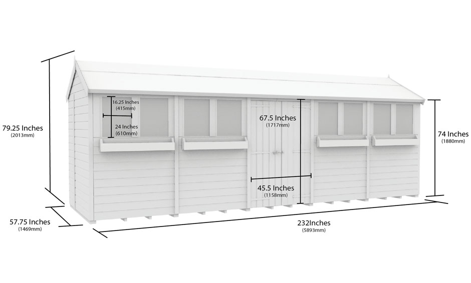 All our summer sheds come in metric sizes, please see the dimensions diagram for further details.
