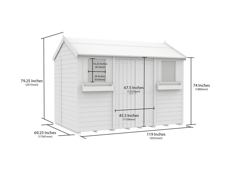 All our summer sheds come in metric sizes, please see the dimensions diagram for further details.