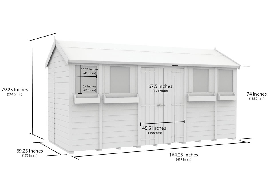 All our summer sheds come in metric sizes, please see the dimensions diagram for further details.