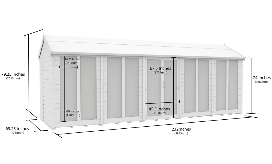 All our summer houses come in metric sizes, please see the dimensions diagram for further details.