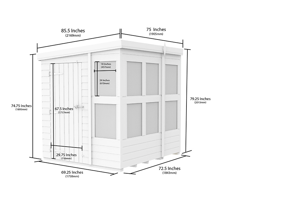 All our sheds come in metric sizes, please see the dimensions diagram for further details.