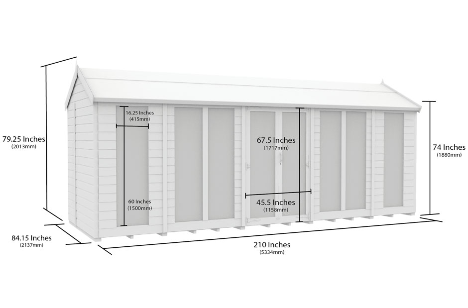 All our summer houses come in metric sizes, please see the dimensions diagram for further details.