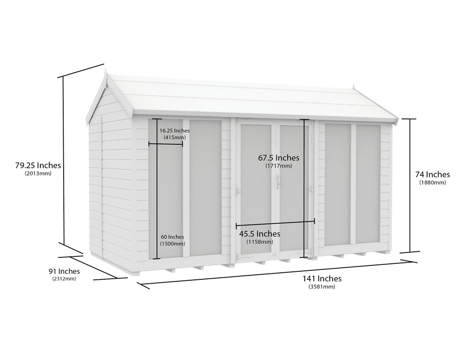 All our summer houses come in metric sizes, please see the dimensions diagram for further details.