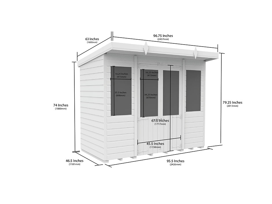 All our summer houses come in metric sizes, please see the dimensions diagram for further details.
