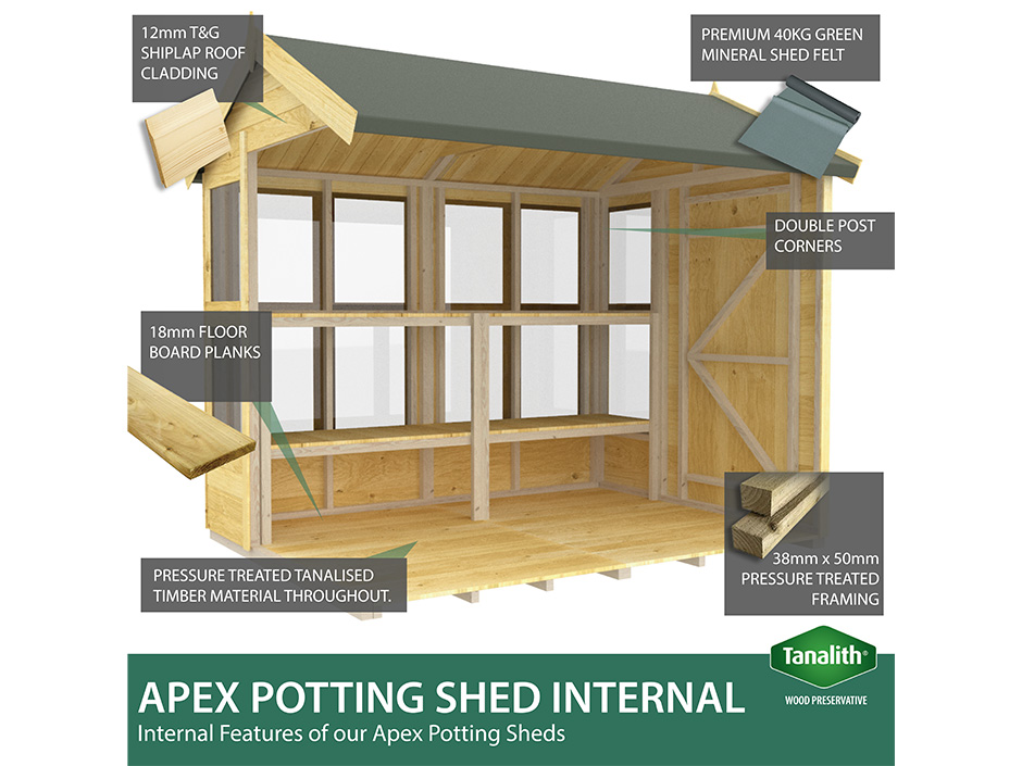 We have now designed, manufactured, delivered and fitted many of these 8ft x 6ft Apex Potting Shed for our wide customer base.