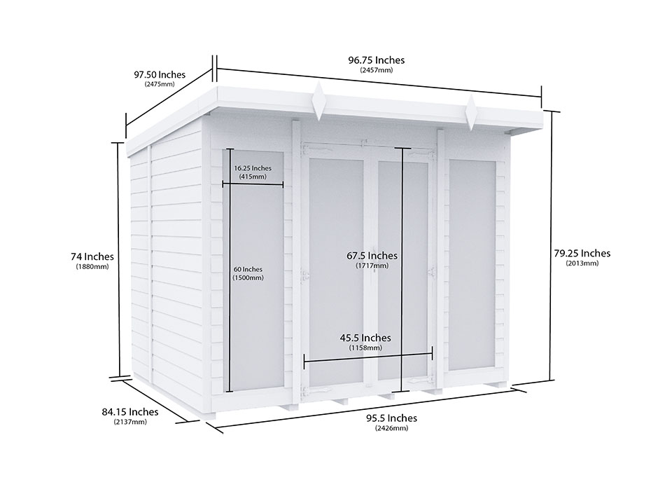 All our summer houses come in metric sizes, please see the dimensions diagram for further details.