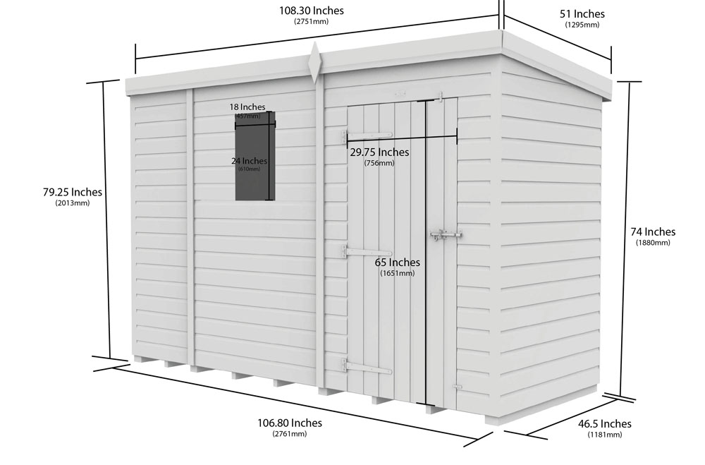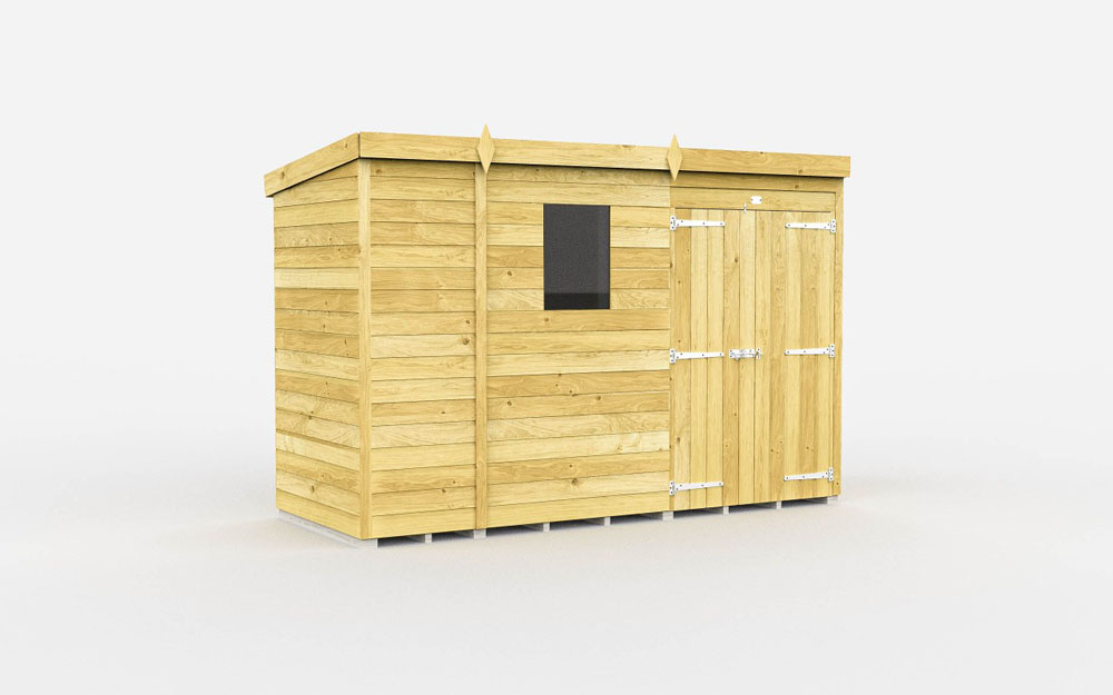 The Flat Pack Sheds 9ft x 4ft Pent Shed comes flat packed and includes express FREE delivery.